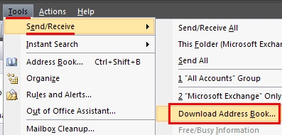 If you are having problems sending to someone with a known good email address (such as a new staff, new student who is someone with a new e-mail address, or someone who has modified their email address by some reasonable means), follow these instructions to resolve the issue. This is often caused when you are using Outlook in Cached Exchange Mode and the information that is cached is old and contains either incomplete or no information about the recipient.Update Your Copy of the Global Address List (GAL) in Outlook 2010STEP 1: With Outlook 2010 open, click the File tab. STEP 2: Click Account Settings, then click Download Address Book. STEP 3: Perform the following actions, then click OK.