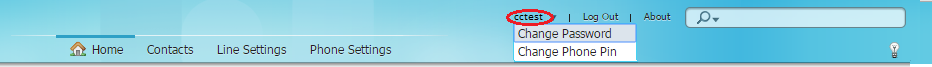 a. Login to Phone Settings Web Portal (https://cm.uc.ust.hk/ccmuser) b. Click "User Name" (ITSC network account) on upper right corner. c. Click Change Password to change the Portal Password