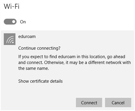 Congratulations! You have connected to eduroam! |