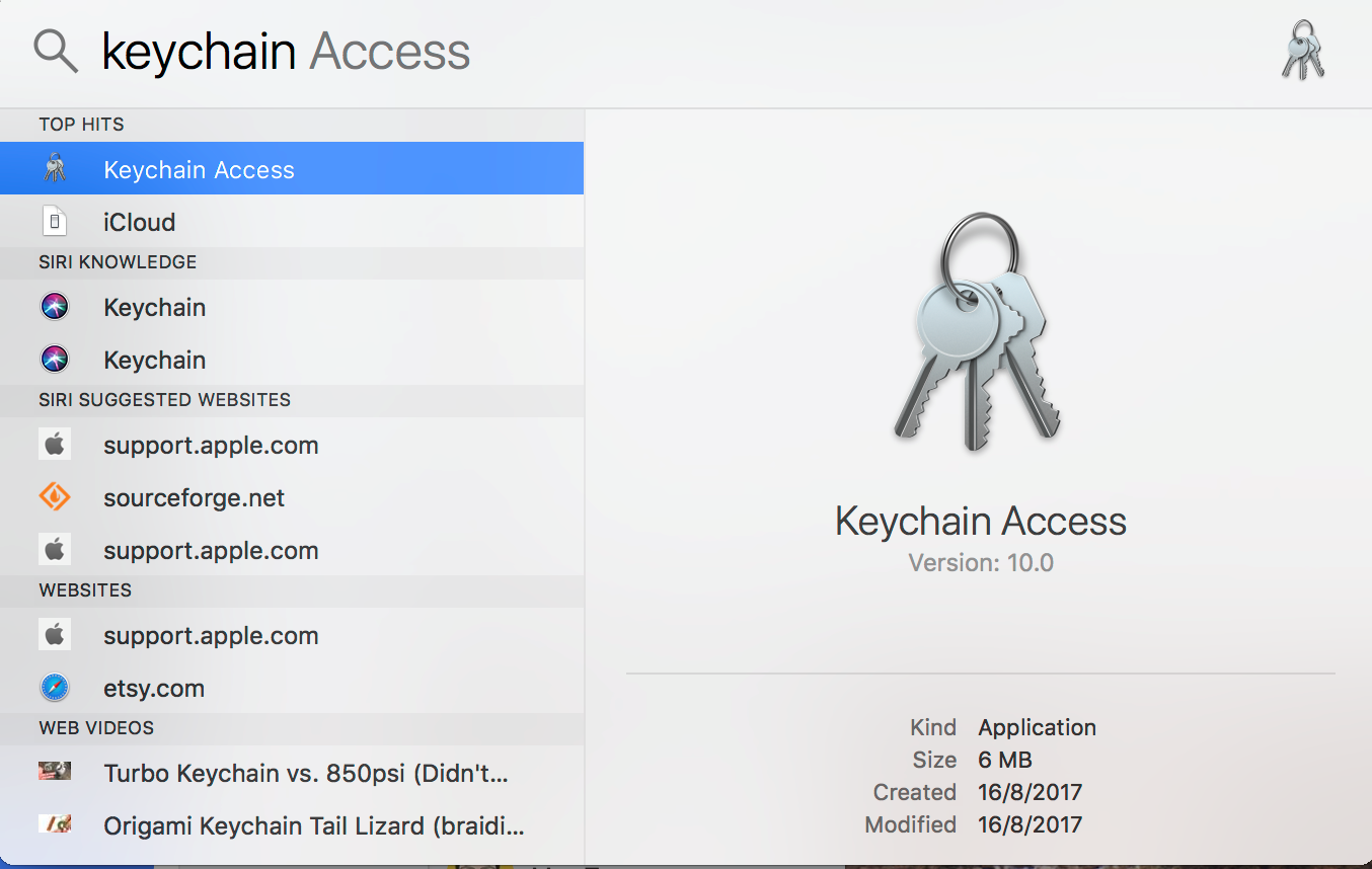 2. Type “Keychain Access” in the search box and click to run “Keychain Access”