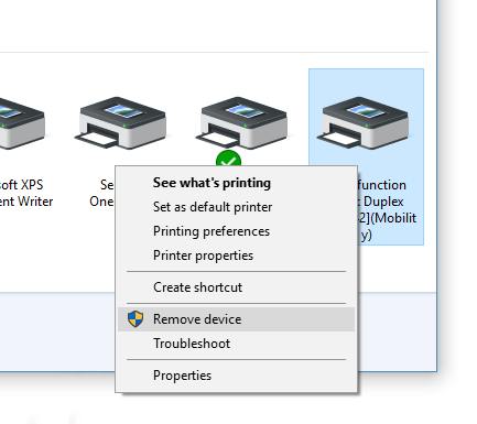 A. If you are using Microsoft Windows devices A1. If you have used the “pc-mobility-print-printer-setup.exe” to add printer Step 1. Remove the printer from the control panel